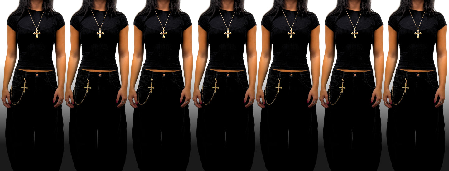 Handcrafted in-house Hypoallergenic & tarnish-resistant Black & Red gemstones on pendant 21" in circumference for a balanced drape Features our gold cuban chain & jumbo gold cross Unisex fit – designed for versatile styling Product is ready to ship