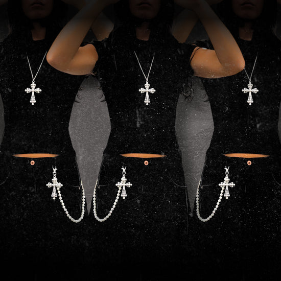 Handcrafted in-house Hypoallergenic & tarnish-resistant Black & Red gemstones on pendant Necklace is 24" Inches in length Features our jumbo silver cross Unisex fit – designed for versatile styling Product is ready to ship